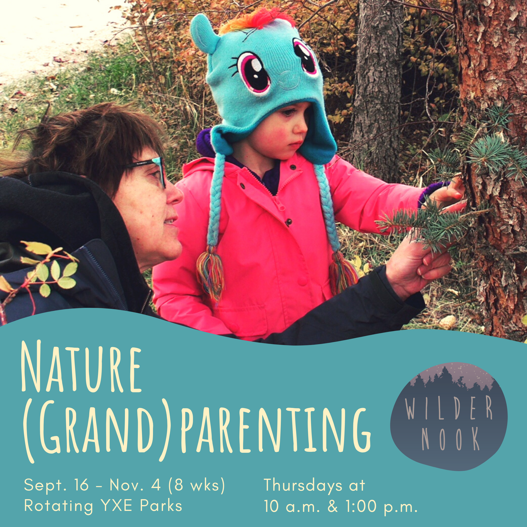 The Nature (Grand)parenting program is designed for caregivers to build a special nature connection with their ~ 3-5 year old grandchild, niece or nephew. Some members of children’s extended family and community are in an ideal position to act as a nature mentor. This program is an invitation to come on out and play together on a regular basis. With practical ideas and age-appropriate activities shared each week, nature mentors will have fun weaving a connection to nature into their relationship with the little adventurer in their life.