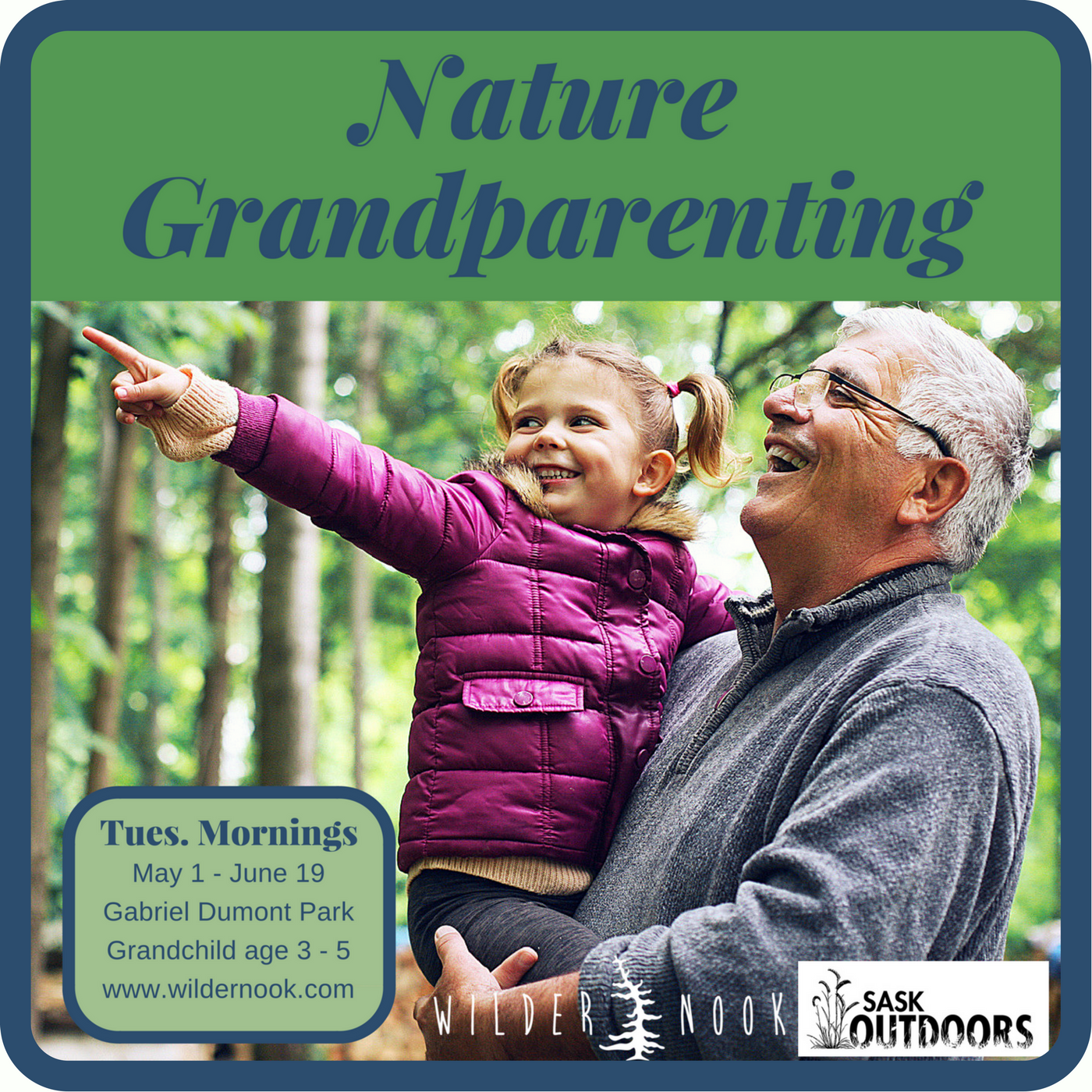 The Nature Grandparenting program is designed for grandparents to experience nature with their grandchild (3-5yrs old) in Saskatoon’s Gabriel Dumont Park. Many grandparents are in an ideal position to act as a nature mentor in the lives of their grandchildren. With practical ideas and age-appropriate activities shared each week, grandparents will have fun weaving a connection to nature into the special relationship they have with their grandchild. This program is hosted by SaskOutdoors and facilitated by Wildernook Fresh Air Learning.